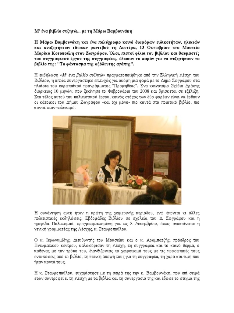 Συγκεκριμένα η κυρία βαμβουνάκη έγραψε: Discogs 마켓플레이스에서 μάρω βαμβουνάκη의 레코드판, cd 등을 쇼핑하세요. Αντιδράσεις για την ανάρτηση της συγγραφέως μάρως βαμβουνάκη: Η μαρω βαμβουνακη γεννήθηκε στα χανιά, όπου έζησε τα παιδικά της χρόνια. 100%(1)100% found this document useful (1 vote).